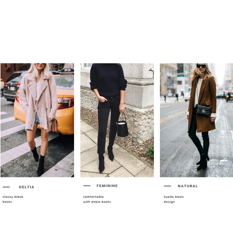 미들힐, 킬힐 두 타입으로 진행하는 슬림한 라인의 앵클부츠입니다.