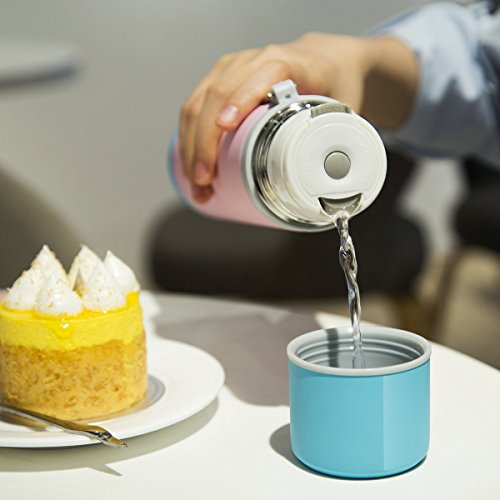 The top is the press type sealing plug,one button to closed. The bottle stopper made of food grade PP, two silicone sealing ring, strong anti-aging. Button switch, sealing operation,easy to dismantle, so perfect for pouring out hot liquid and the cover used silica gel seal ring, security leak proof seal.