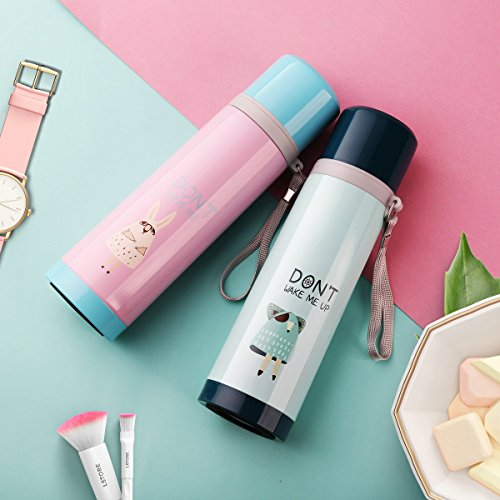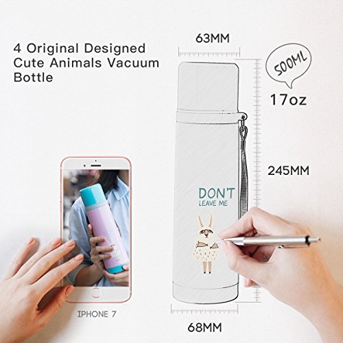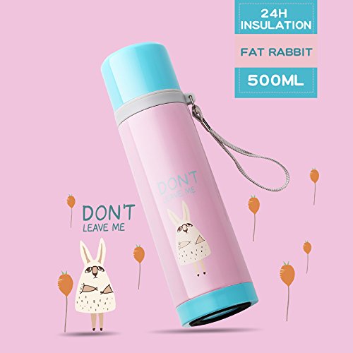 UPSTYLE Vacuum Insulated Stainless Steel Thermos Travel Insulated Tumblers Portable Sports Water Bottle Double Layer Vacuum Bottle for Home and Office/24 Hour Heat Retention, 17oz (Fat Rabbit)