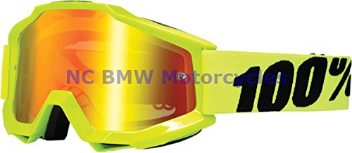 -. Feature : 100% Motorcycle Riding Goggle ACCURI Fluo Yellow Mirror Red Lens 50210-004-02 / Anti-Fog - Accuri - One Size Fits Most - Off Road - Goggles - Comes With An Extra Clear Lens. - Adjustable Strap - Single Layer Foam - Frame Color: Yellow - Lens Color: Mirror Red - Lens Type: Anti-Scratch Lexan Single Pane - Scratch-Resistant - Strap Color: Yellow - Tear-Off Compatible - Tear-Off Equipped