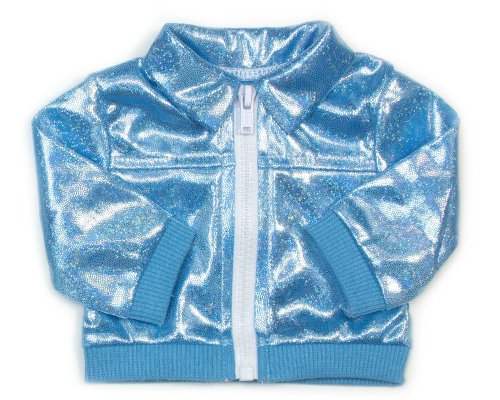 Stretchy Glitter Filled Aqua Zip Up Jacket with Cotton Sleeve Cuffs. Will Fit Your American Girl Dolls and More!