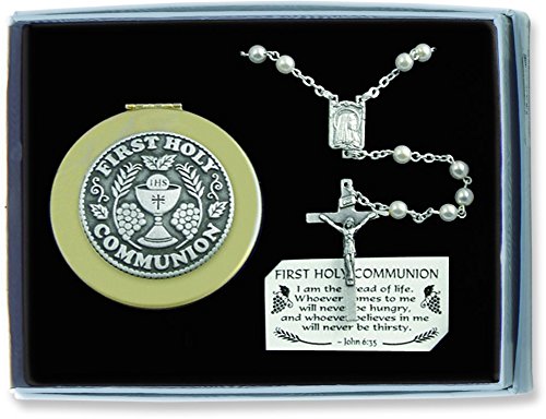 Cathedral Art CS118 First Holy Communion Crystal Bead Rosary and Keepsake Box, Gift Set