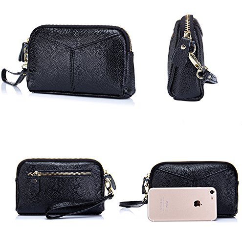 - Structure: 1 large main zipper pocket, with 1 secret zipper pocket and 1 card holder compartment inside, 1 back zipper pocket;Large Capacity Wristlet: Cell phone, small wallet, lipstick, glasses, tissues, keys, power bank and other things.