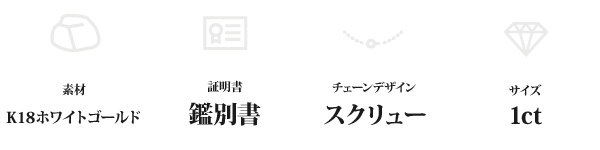 【商品名】K18WG 1ctダイヤモンドペンダント/ネックレス スクリューチェーン(鑑別書付き)