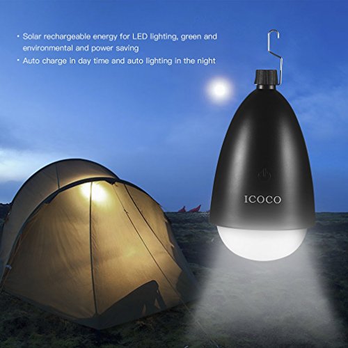 ICOCO Solar Tent Light Camping Light Bulb Security Floodlight Waterproof IP65 Touching and Remote Control With 2 Light Model For Outdoor Hiking Camping