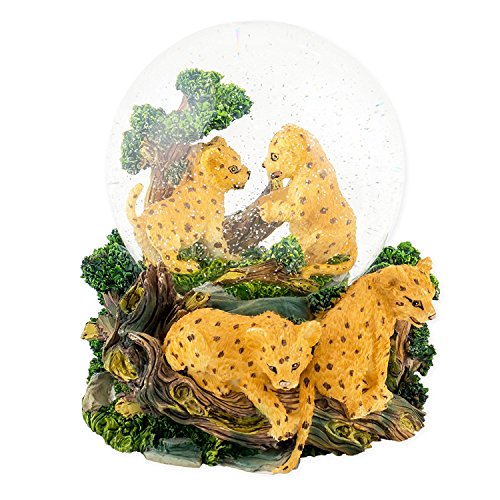 Playful Cheetah Cubs 100mm Resin Water Globe Plays Tune I Just Can't Wait to Be King