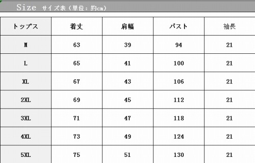 【5XL】バスト約130cm 丈約75cm 肩幅約51cm 袖丈約21cm