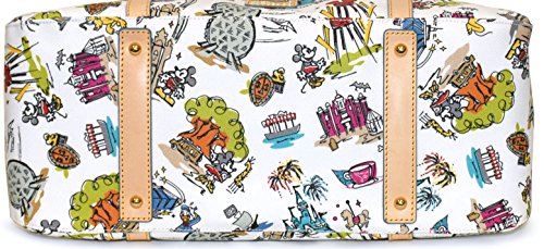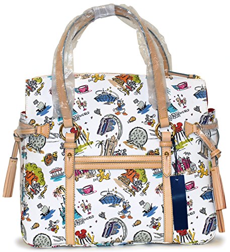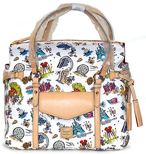 Product Description Featuring your favorite Disney characters, this luxurious handbag by Dooney Bourke is large enough to carry all of your accessories. Measures approximately 14 inches tall, 15 inches wide, and 7 inches deep. *Please note: Each piece is unique. Characters included on pattern may vary. 0