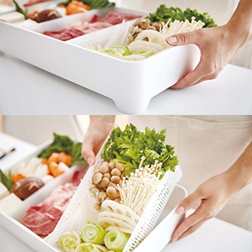 Since the trays on the left and right have drain holes, it is convenient for putting washed vegetables and tofu containing moisture.