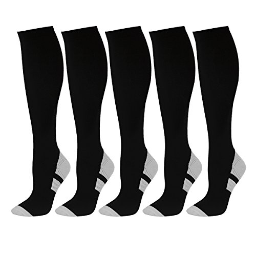 5-Pairs Compression Socks for Men&Women by Upsimples, 15-20mmHg Compression Stockings for Running, Sports, Flight, Travel, Pregnancy, Nursing Support Socks for Reducing Swelling, Pains and Aches
