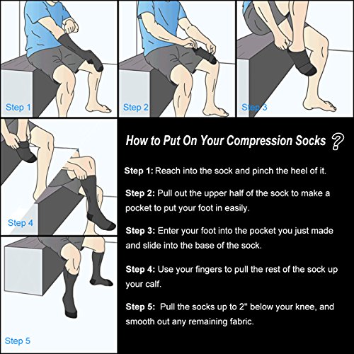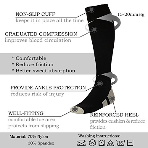 Support Your Legs with Graduated Compression -- Our compression socks provide graduated compression(15-20mmHg) from your leg to heel, ankle and up to your calf to provide the maximum boost to your blood circulation,help to protect your legs from swelling, pain or discomfort with long-time standing or moving, perfect anti-fatigue aid for nurses, teachers,runners, athletes, fitness workouts, hiking, tennis, cycling, office workers, airplane travelers, or anyone on their feet all day!