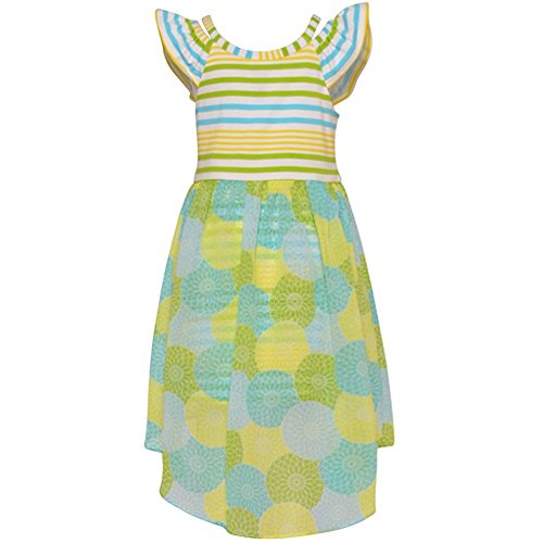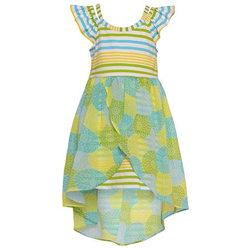 -. Title : Bonnie Jean Big Girls Turquoise Green Stripe Floral Pattern Hi-Lo Dress 7-16