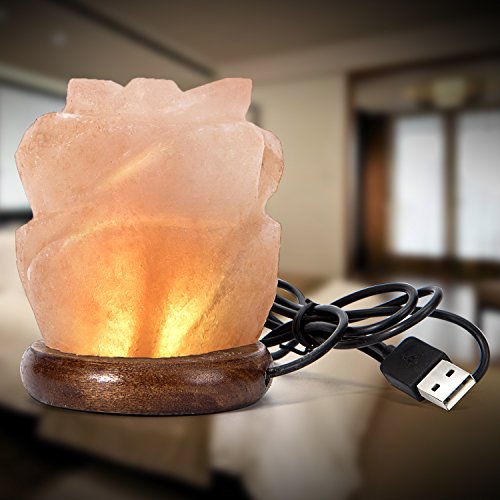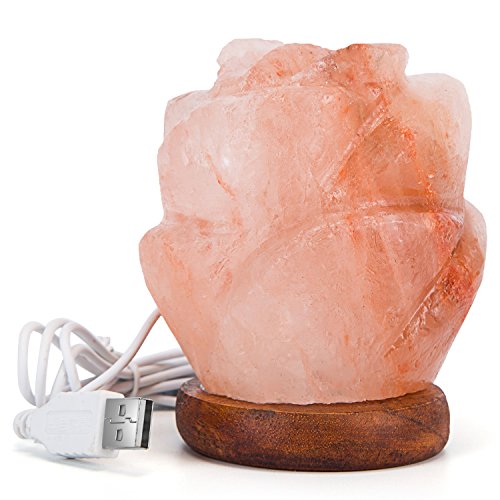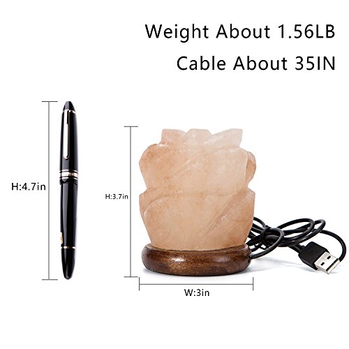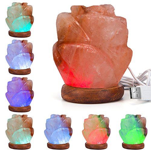 Hymilian Sea Salt Lamp - Himalayan Pink Rose Hand Carved Glow Rock Salt Lamps With Wood Base Included USB Electric Wire & Multi Color Changing LED Light - Mini Air Purifier For Office Home Hotel Yoga