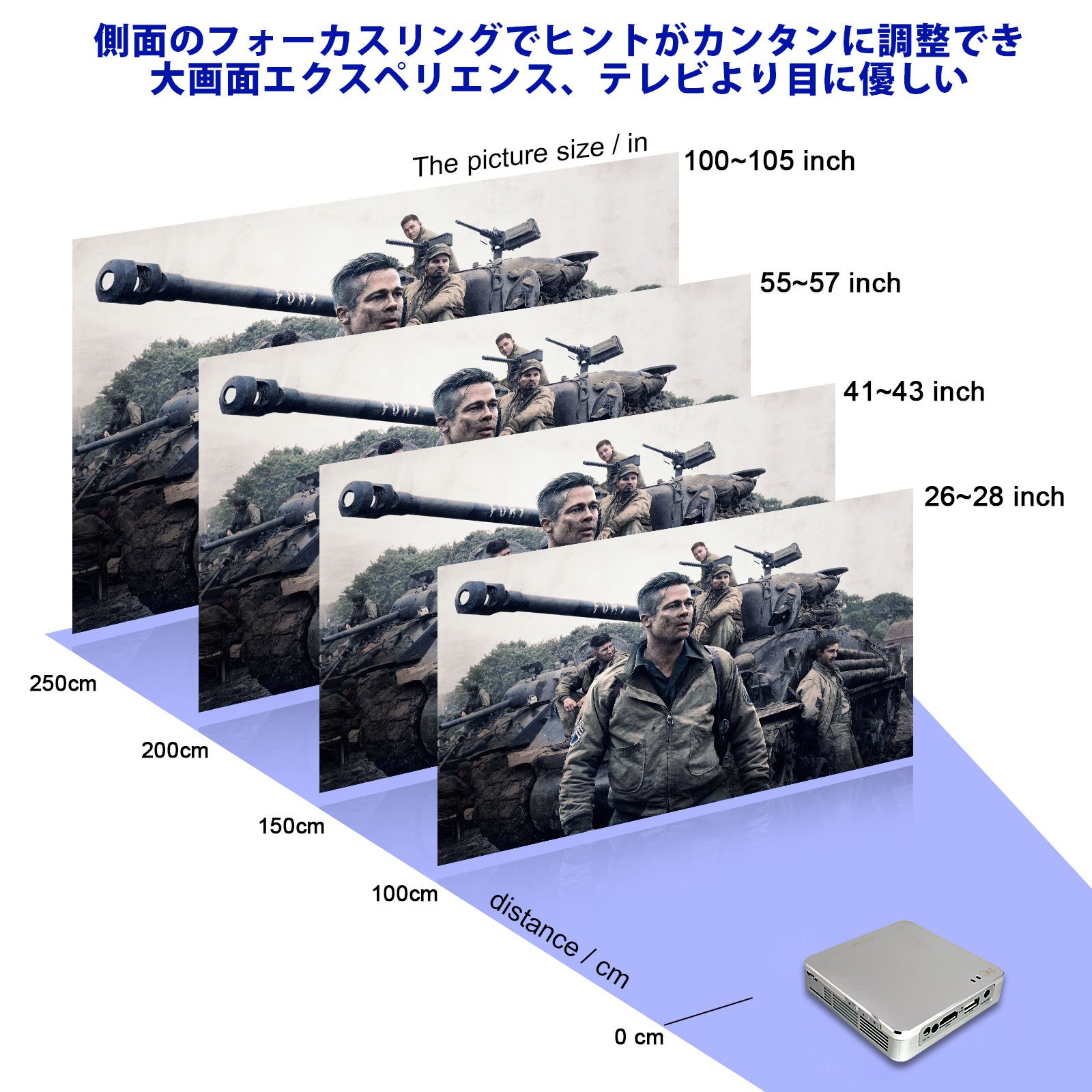 In addition to the 4000 mAh built-in power supply and high resolution output, it is compact and lightweight, so it can be adapted for various purposes such as conference, training, lecture, social gathering, party and picnic.