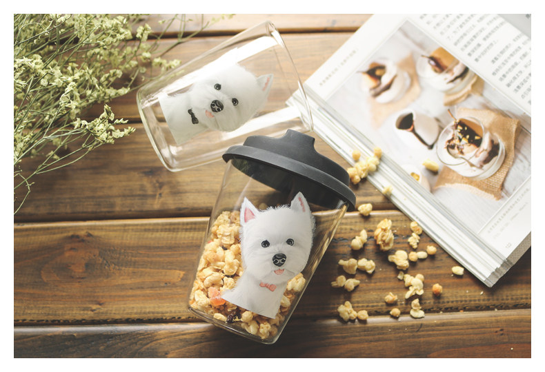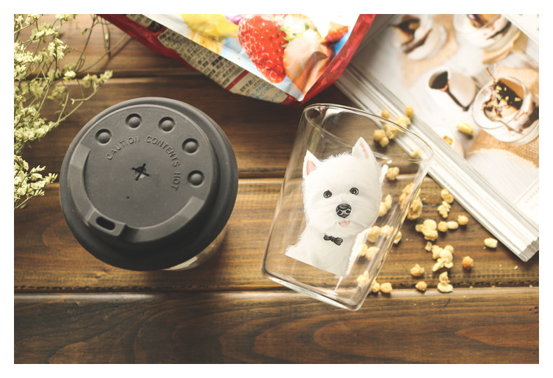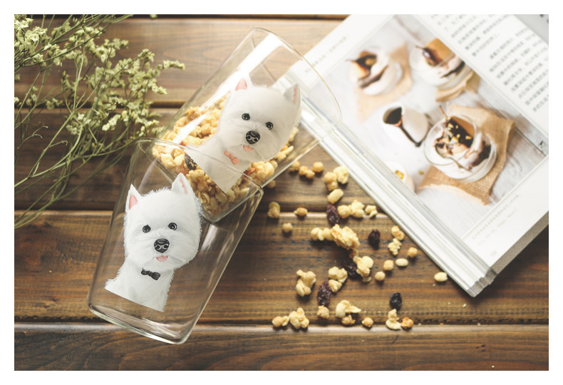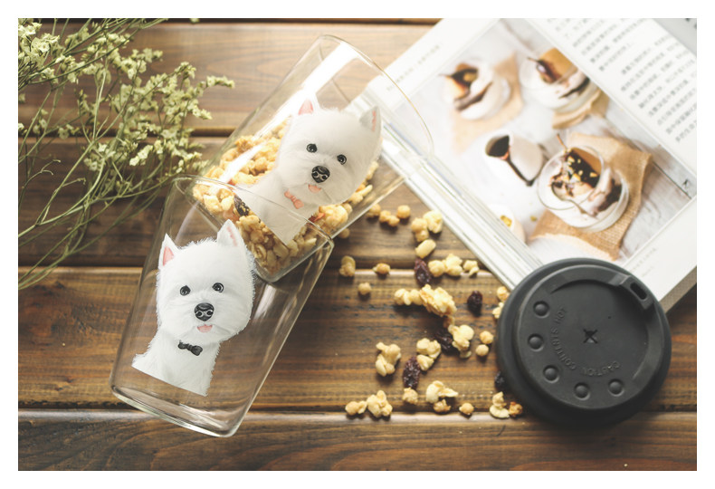 小清新创意水果杯萌宠西高地系列玻璃杯果汁早餐杯可爱狗狗印花杯