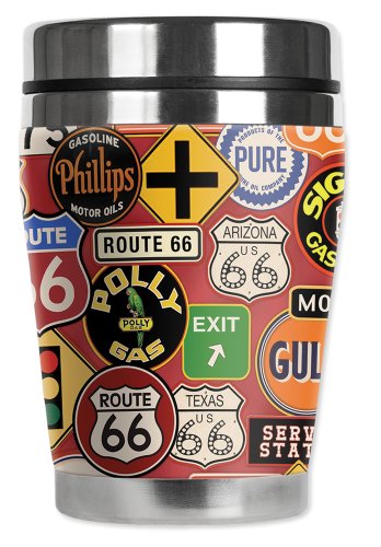 Mugzie Gas Station Signs "Mini" Travel Mug with Insulated Wetsuit Cover, 12 oz, Black