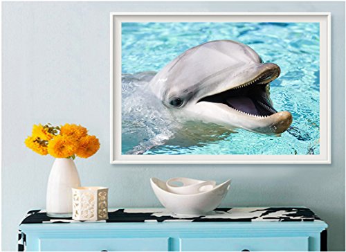 21secret 5D Diamond Diy Painting Full Round Drill Handmade Animal Portraits Cute Smiling Dolphin Cross Stitch Home Decor Embroidery Kit
