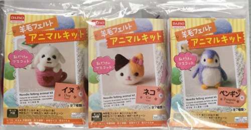 Daiso Dog, Cat, Penguin Needle Felting DIY Set, Pack of 3