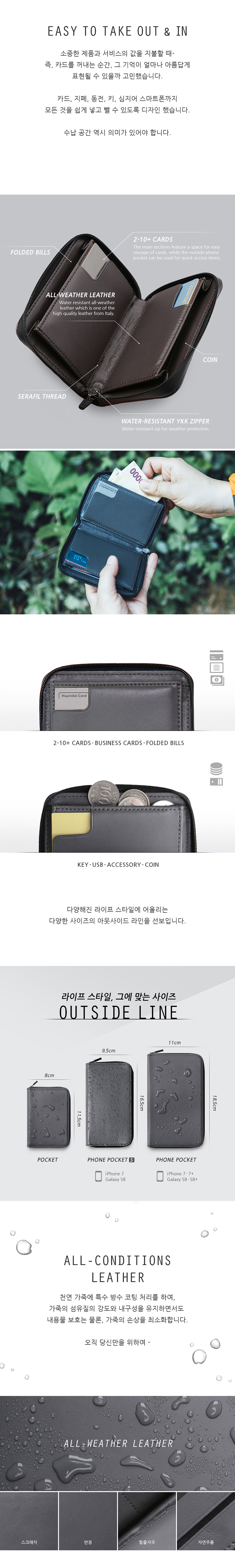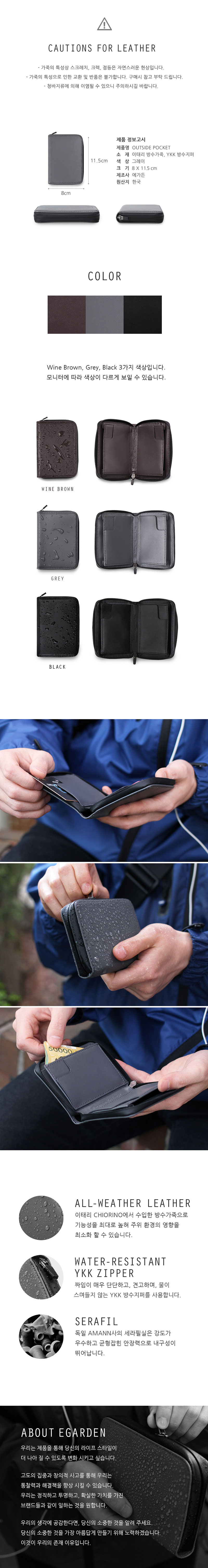 방수지퍼와 방수가죽으로 어떠한 상황에서도 보호되는 지갑.