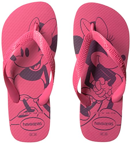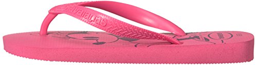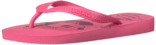 Disney's sweetest duo make an appearance on havaianas' best-selling top styled flip flops. the top disney features classic mickey or minnie on the insoles and is finished with a havaianas logo on contrast straps. our signature textured footbed brings comfort to this whimsical style.Feature
