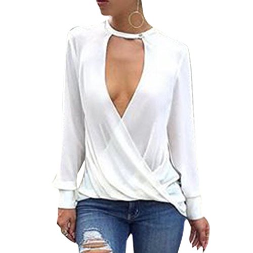 -. Title : Pretid Women Sexy White Cross Deep V Long Sleeve T Shirt