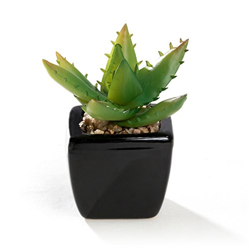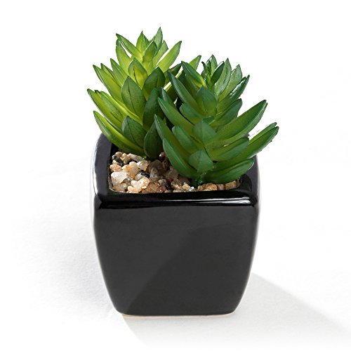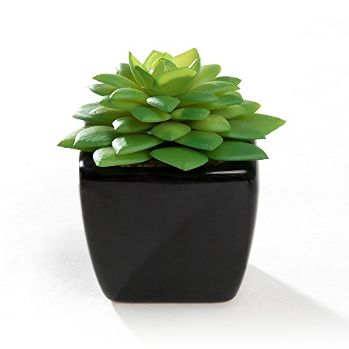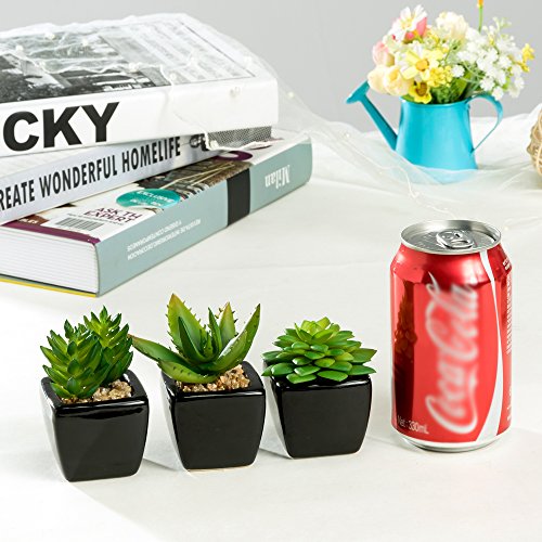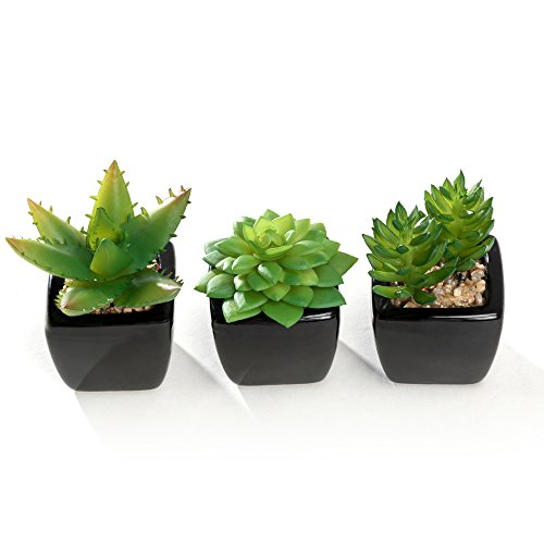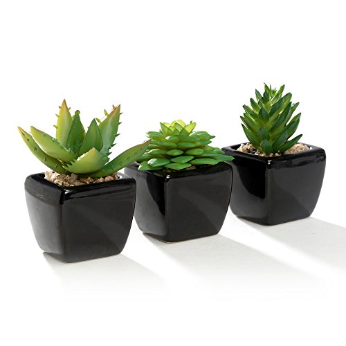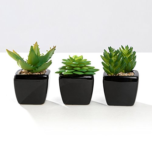 Nattol Modern Mini Artificial Succulent Plants Potted in Cube-Shape Black Ceramic Pots for Home Decor, Set of 3(Black)