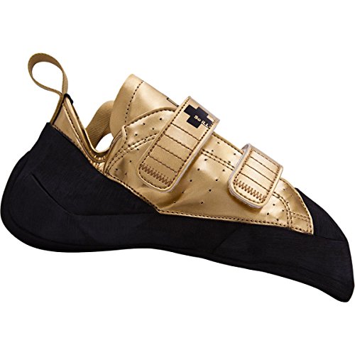 Studio : So Ill Holds Publisher : So Ill Holds Binding : Apparel Product Description Climbers already thought So Ill's Street Climbing Shoe was pure gold for competitions. Well, So Ill decided to make a literal gold version to celebrate the worldwide contest that finally recognizes climbing as a competitive sport. The 2020 Gold Climbing Shoe is just as aggressive, downturned, and sensitive as the Street to give you the advantage when it comes time for you to beat the competition. Its Dark Matter rubber comes from So Ill's UnParallel Rubber family, which the Navy Seals use for reliable traction during covert missions, and its non-marking convenience ensures long-lasting durability. The synthetic upper has a padded tongue for comfort, and since it doesn't stretch much, So Ill recommends sizing the shoe similarly to your regular street shoe. 0