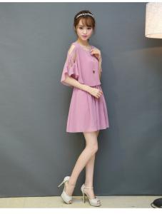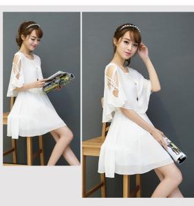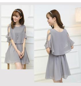 シフォンワンピース ミニ丈ワンピース フレアスカート ミニ丈 オープンショルダー フレア袖 パーティー プチプラ
