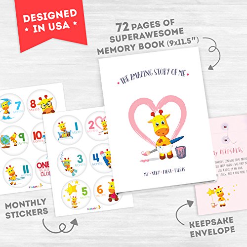 Say Hellooo to KiddosArt's own celebrity - Lilly the Giraffe! The Amazing Story of Me starring Lilly the Giraffe crafts beloved moments into memories for a lifetime. Join us and take Lilly's hand on a colorful and joyous adventure of laughter and hops. Capture your baby's growth and awesomeness, as Lilly and her loving family add a touch of sweetness and happiness to your favorite memories in a beautifully drawn baby memory book. From back in the days when mommy and daddy met to your baby's first year in school, the fun-tastic Lilly tells the Amazing Story of YOU! in a one-of-a-kind 72 pages photo album bundled with a keepsake envelope and 12 monthly stickers. Our Memory book is filled with lots of exciting moments such as: ? Baby Shower Party ? Ultrasounds ? Growth and Teething Chart ? Hands and Foot Prints ? Monthly Growth ? Milestones and Activities ? Holidays and Celebrations ? Birthdays - up to 5 years old! ? Family and Friends ? First year in schooll The KiddosArt baby memory books are crafted with lots of love, fun and great care by our family to record your baby's growth, as a precious keepsake to reminisce on for many years to come. Why you'll love love love... ? The perfect baby shower gift. ? The most complete Baby Memory Book/Photo Album/Scrapbook available anywhere! ? Records baby's 1st year's growth in great detail 5 birthdays and Holidays. ? 72 beautifully drawn 8.5" x 11" pages with original storytelling artwork. ? FREE! 12 monthly stickers 1 keepsake envelope - just because we LOVE! ? Easy to modify and has room for funny stories with over 100 photos ? Responsibly Printed, Eco-friendly, Soy based-Inks. Parents, we're here for you! Feel free to contact us with any questions! 0 |
