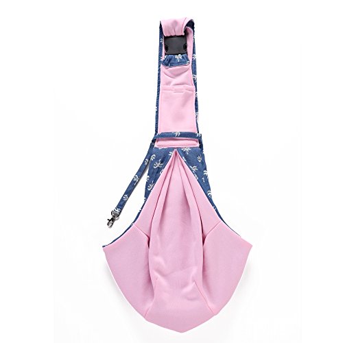 -. Feature : Material: Soft cotton and polyester dog carrying bag, keep your pet secure and comfortable in the tote bag / Adjustable: hands free dog sling carrier shoulder bag, the strap is adjustable, short or longer strap as you wish, will not affect walk or sit around / Collar latch: the small dog carrying front bag with collar latch loops around the shoulder strap and is long enough the pup can lay down in the bottom of the sling, will not jump out / Double-sides use: double-side used dog pet carry backpack bag, hold pets around 11lb, great for take your pet with you. / Phone hold pocket pets carrier: with one pocket on the should strap for put your phone