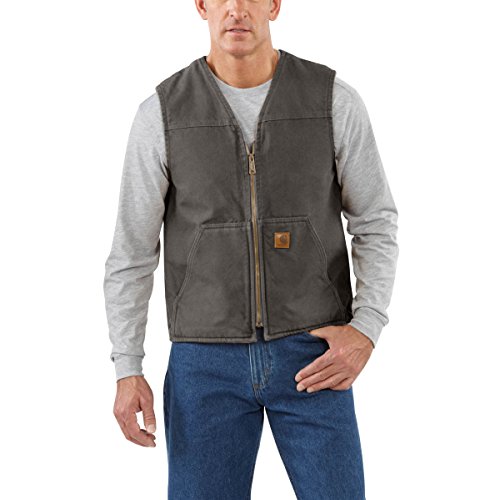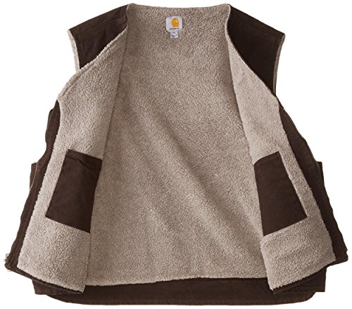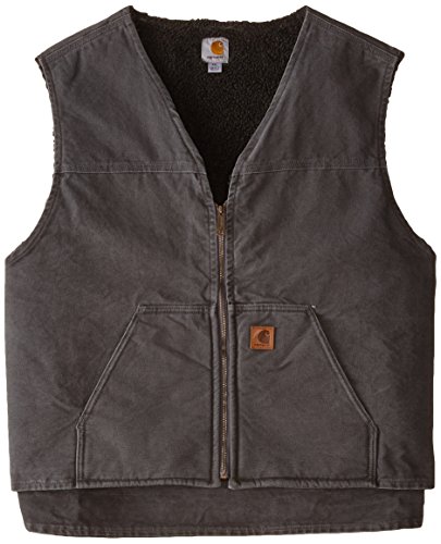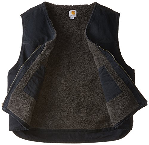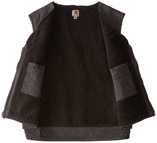 Studio : Carhartt Sportswear - Mens Publisher : Carhartt Sportswear - Mens Binding : Apparel Product Description Offering durability, warmth and freedom of movement, Carhartt's sandstone rugged vest is made of rugged 12-ounce, 100-percent cotton sandstone duck. Its Sherpa lined for warmth, and features two inside pockets and two Sherpa-lined, lower front pockets. There's a heavy-duty antique-finish brass zipper, plus a drop tail for added coverage. 12-ounce, 100-percent cotton sandstone duck Sherpa lined Sherpa-lined front pockets 0