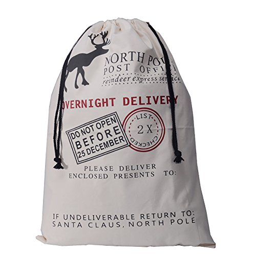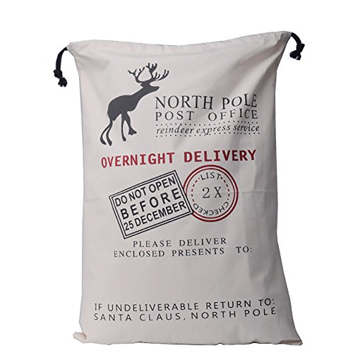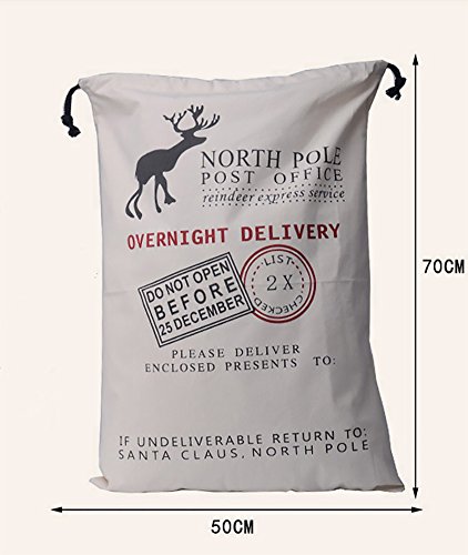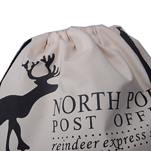 6MILES Extra Large Professional Cute Santa Claus Sack Personalized Storage Goody Christmas Gift Wrap Bags Natural Canvas Cotton Deer Pattern Design (01, White)