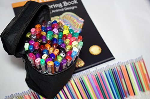 PREMIUM 144 GEL PENS SET-CANVAS TRAVEL CARRYING BAG 72 original colors including glitter and metallic with 72 refills-The Best Gel Pens for Coloring books Scrapbooking etc- Non toxic so safe for kids!