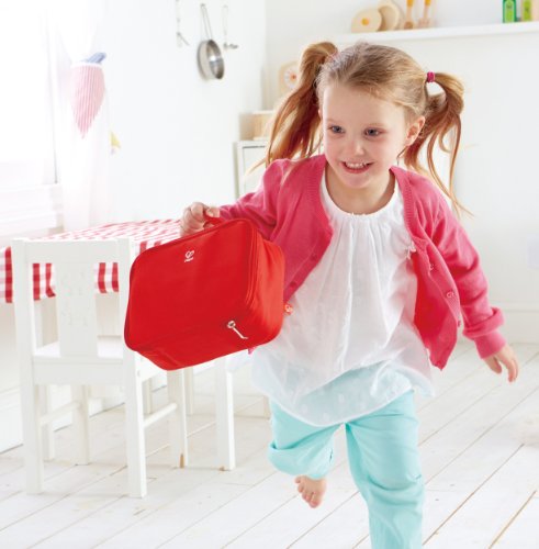 Make a sandwich, drink your juice, and don't forget the yogurt and fruit. This soft-sided lunchbox has all the ingredients for a yummy meal on-the-go. When your little one is in a hurry for a play date, you will want to consider getting them a Lunchbox Set from Hape for them to take with them. Hape's Lunchbox Set contains wood and felt versions of everything that would usually make a delectable lunch: yogurt, a cookie, a juice box, an apple, and the makings for a darn good sandwich. The Lunchbox Set from Hape is made using high-quality ingredients such as Baltic Birch plywood and solid Maple, all with child-safe finishings. Best of all, Hape's Lunchbox Set won't spoil if you don't refrigerate it. Durable child-safe paint finish and solid, wood construction are hallmarks of Hape toys. Hape's toys stimulate children through every stage of development and help nurture and develop their natural abilities. All Hape products sold in North America meet or exceed all applicable safety standards. For ages three years and up.