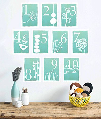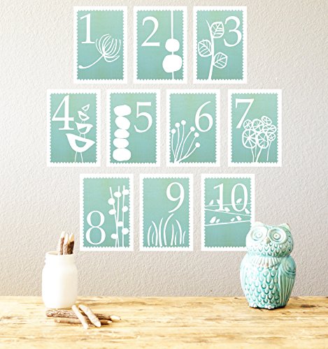 Blue Silhouette Counting Number Wall Cards, 5x7, Nursery Wall Decor, Gender Neutral Art, Scandinavian, Children's Wall Art, Nature-themed Nursery...