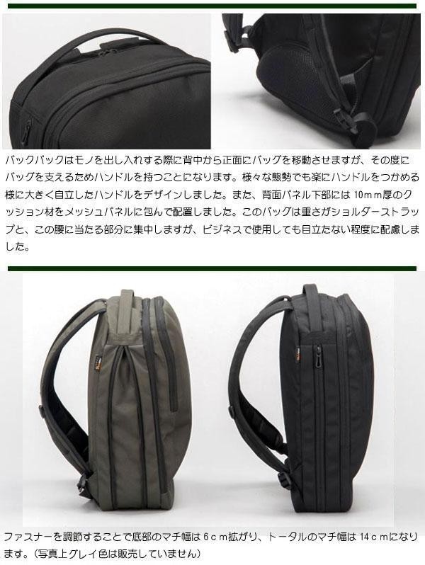 軽さと強度のバランスに配慮した、PC対応のビジネスバックパックです。シンプルな外観ですが、ビジネスバッグのノウハウとアウトドアでの経験が詰め込まれた自信作です! |