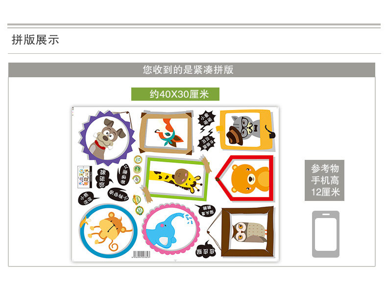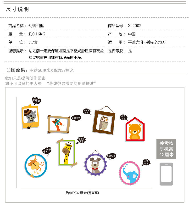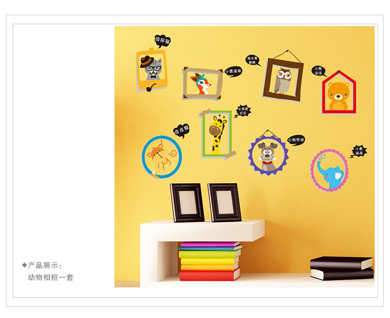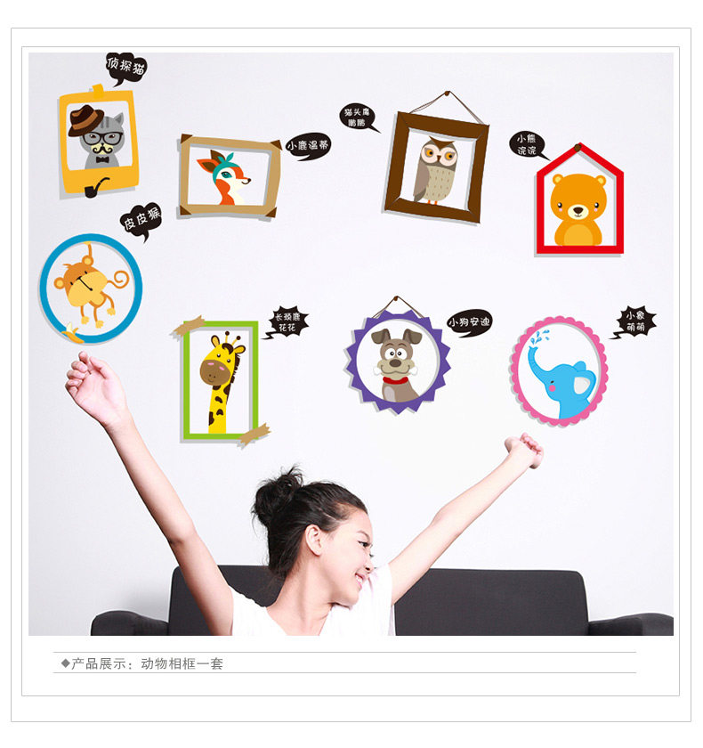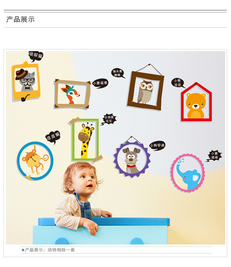 动物相框墙贴照片贴纸 儿童房间墙面装饰幼儿园背景布置相片贴画