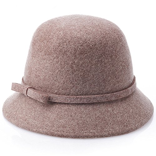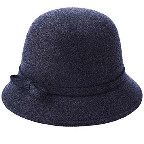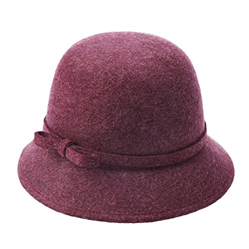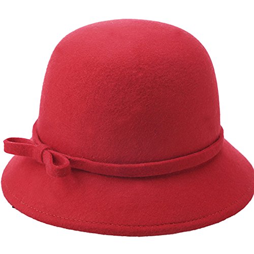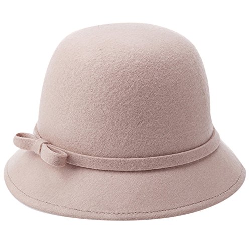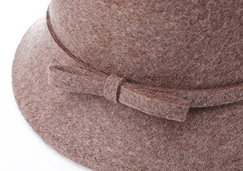 | (Ealafee)/Accessories/Hats/DIRECT FROM USA/Ealafee Lady's Solid Color Wool Cap with Brim Beret Winter Fedora Cloche Bow Hat |