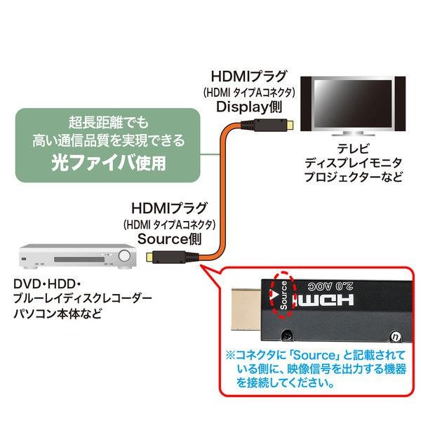 | 4K/60Hz高速伝送対応のHDMI光ファイバーケーブル。 |