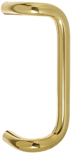 Rockwood BF157.3 Brass 90-Degree Offset Door Pull, 1" Diameter x 10" Center-to-Center, Through Bolt Mounting for 1-3/4" Door, Polished Clear Coated Finish