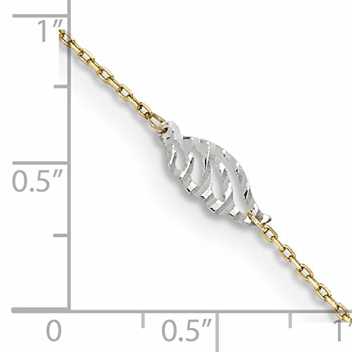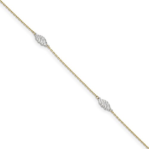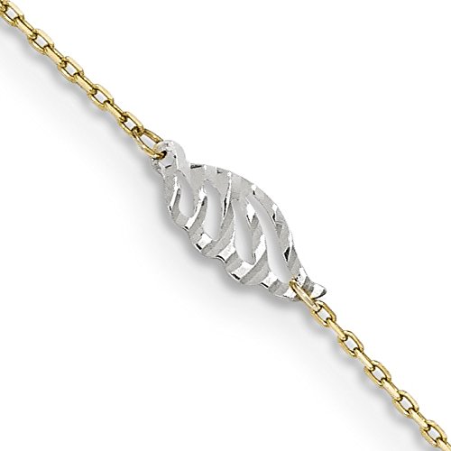 14k Two-Tone Gold Textured and Polished Leaf With 1 Inch Ext. Anklet - 10 Inch - in 14k Yellow Gold and White Gold - JewelryWeb Style: QTA285504YW - FREE gift-ready jewelry box