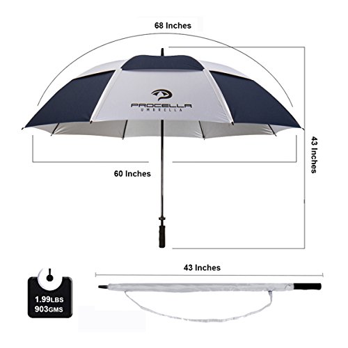 -. Title : Best Large Oversize Golf Umbrellas by Procella Umbrella 68 Inch Windproof Vented Double Canopy w/ UV Protection for 3 Persons at Weddings or Outdoor Events, A Doorman's Umbrella NEW IMPROVED VERSION