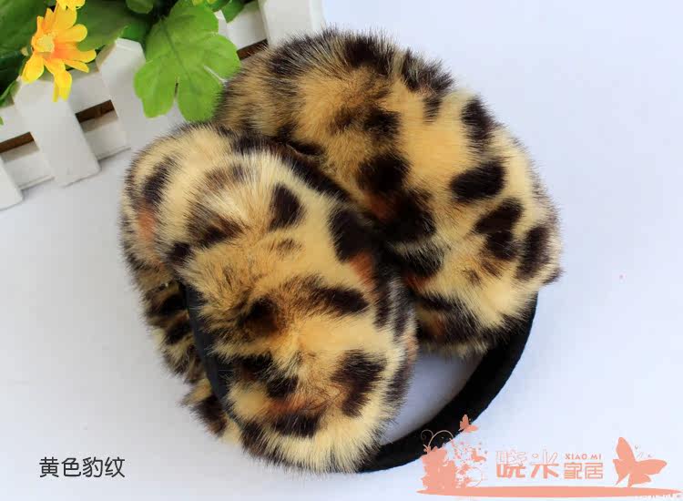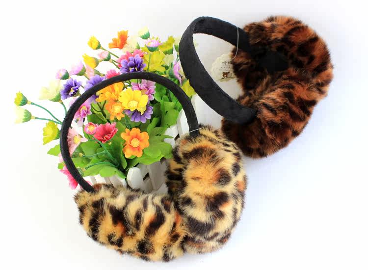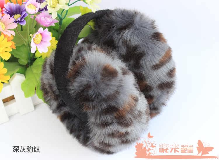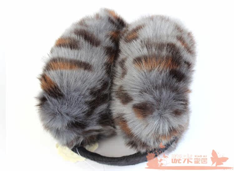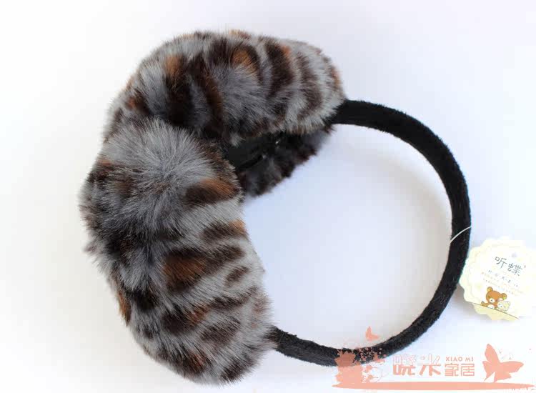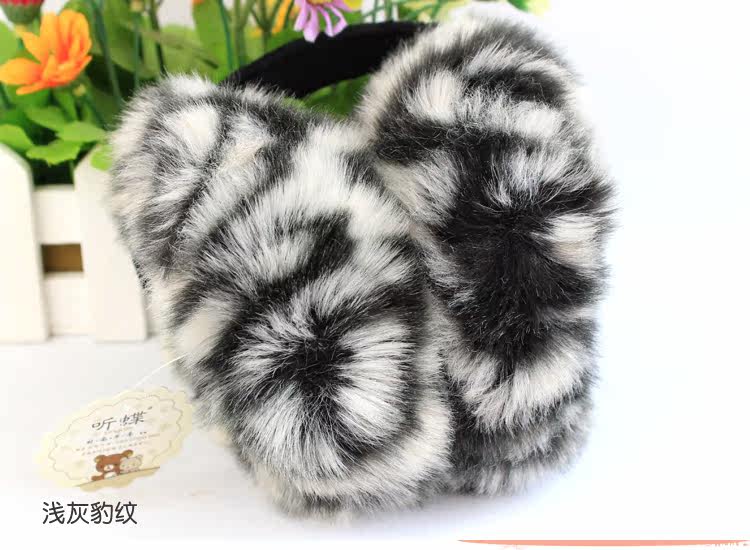 [Name]: leopard earmuffs[Brand]: Listen butterfly[Material]: plush imitation rabbit hair- Size: about 11 cm in diameter ear packageColor: dark gray yellow brown gray