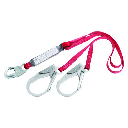3M Protecta PRO 1340180 6', 100-Percent Shock Absorbing Lanyard, Snap Hook On One End, Rebar Hooks On Leg Ends, 310 lb. Capacity, Red