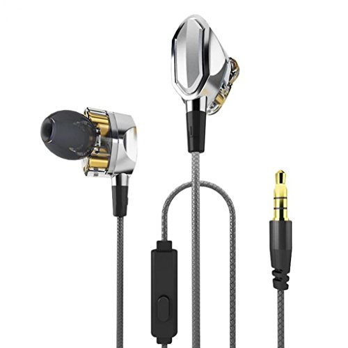 -. Feature : Dual Drivers: Equipped with closed dynamic dual-driver system, delivers exceptional sound quality, with unsurpassed clarity from sizzling highs to deep bass. / Noise Isolation: Engineered with tightly sealed structure, a high level of noise isolation makes quieter and music sound better. / Sports earbuds with microphone allows your ear phones to act as a headset for hands free calling capability. Answer phone calls through your earbuds for safe driving, even you are running or exercising. / Built in mic with voice control button, easily change volume, skip tracks, answer calls, etc. / Fits for iPhone, iPad, iPod, Android devices and all 3.5mm jack devices.