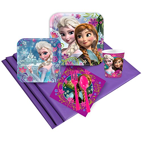 -. Feature : Includes (24) paper dessert plates, (24) paper dinner plates, (24) 9 oz. paper cups, (24) plastic forks and spoons, (48) 2-ply paper napkins, (1) plastic tablecover. / Add matching tableware, favors, accessories, or a party kit bundle to complete your Frozen birthday party! / Features Anna, Elsa, and Olaf from the Disney movie!