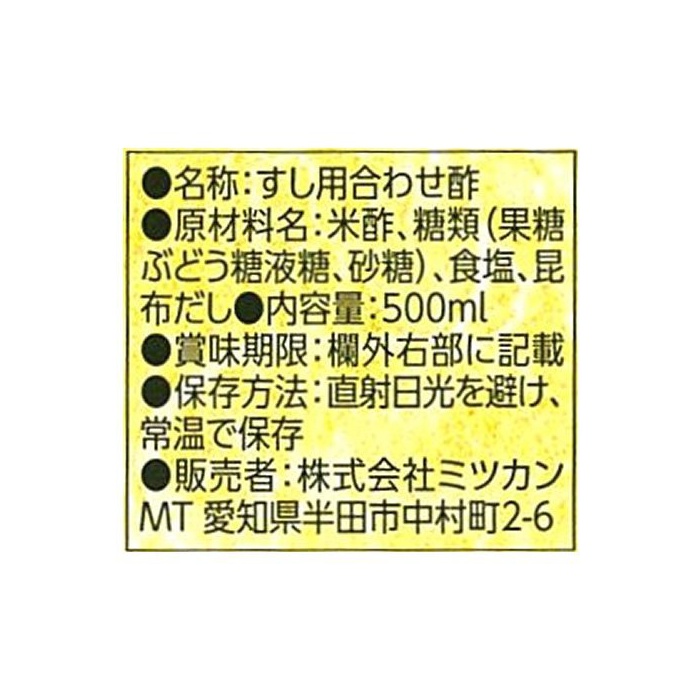원본상품명: ミツカン すし酢 昆布だし入り 500ml
