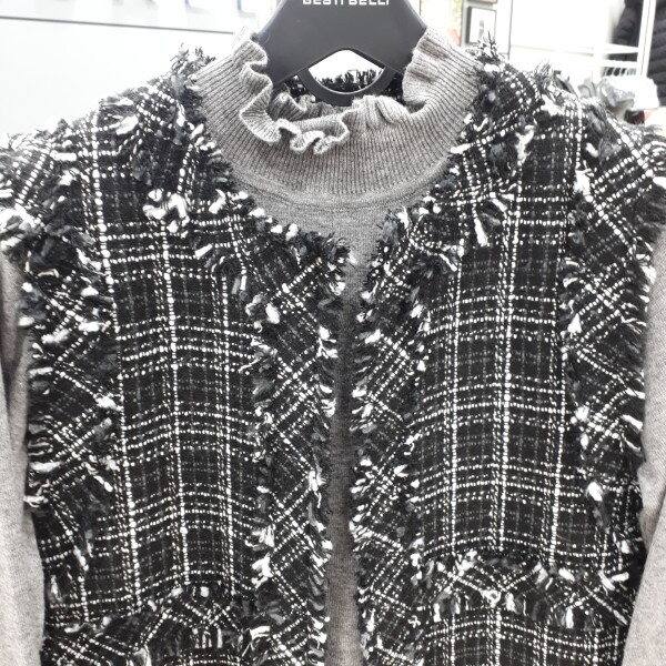 겨울철아우터안이나실내에서보온을목적으로도 자주애용하는배스트입니다 고급스러운트위드소재의베스트입니다독특한텍스쳐가 장점인아이템입니다