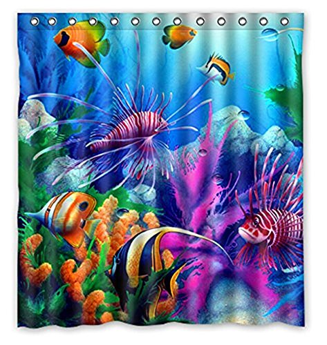 Custom Shower Curtain 66" x 72" Fish Refreshing Submarine World Colorful Tropical Sea Life