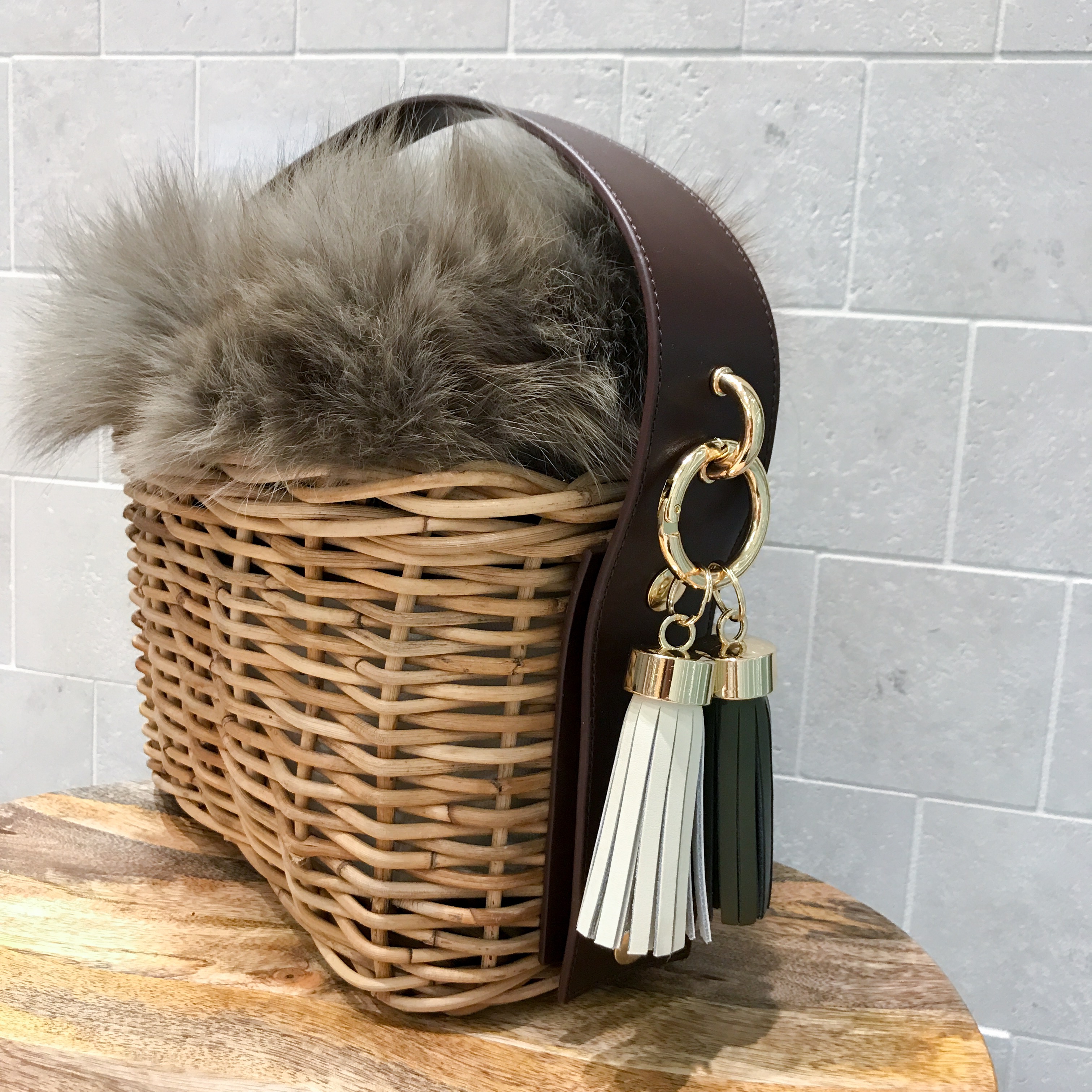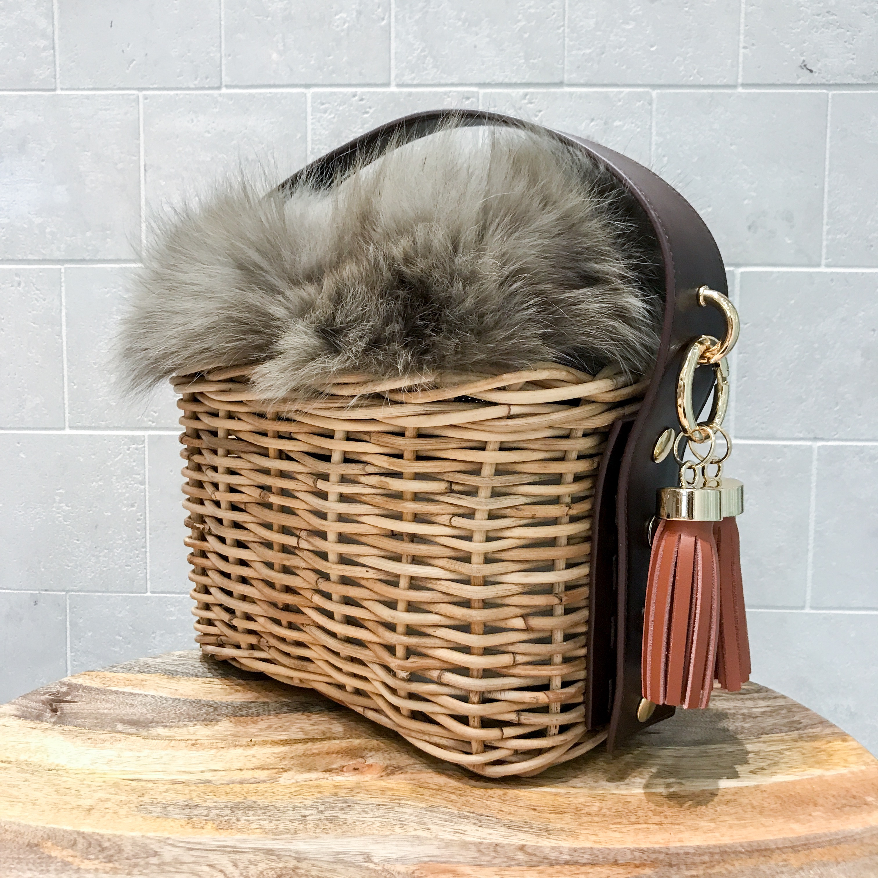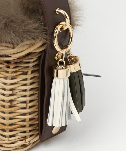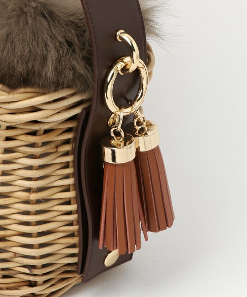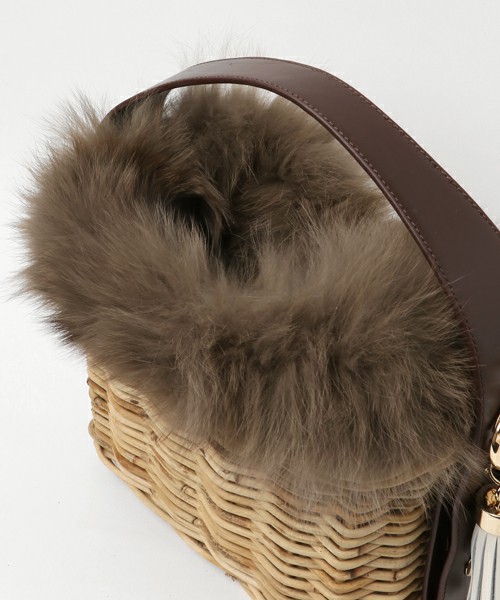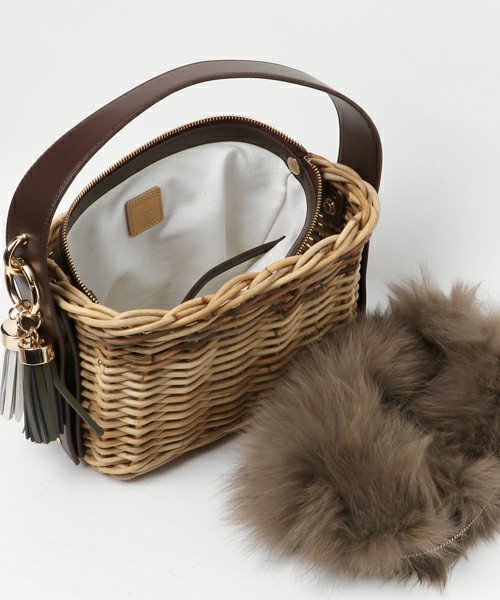 【素材】カゴ部: 紅籘, レザー部: 牛革, ファー部: フォックスファー(グレー, バーガンディー), チベットラム(ブラウン, オリーブ)